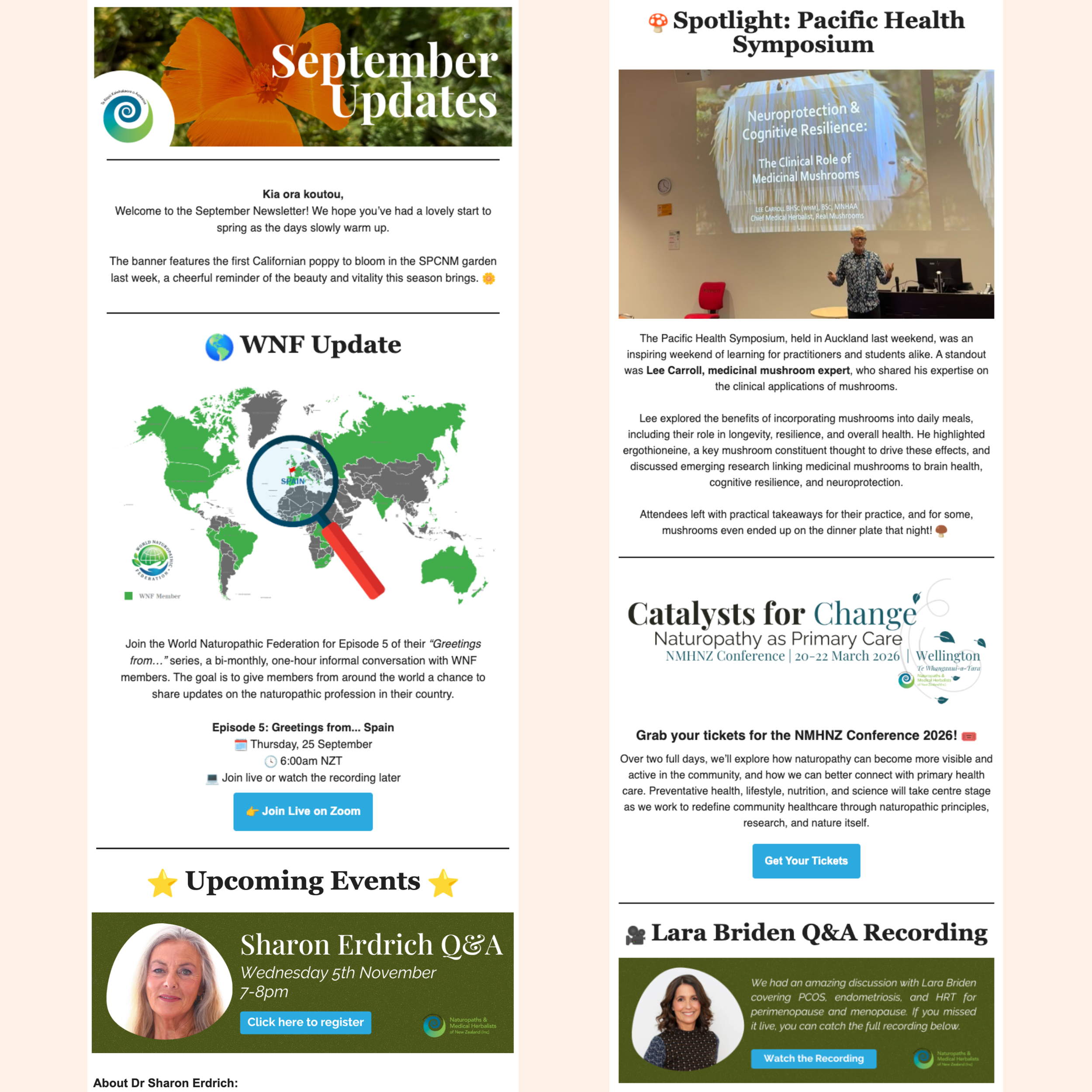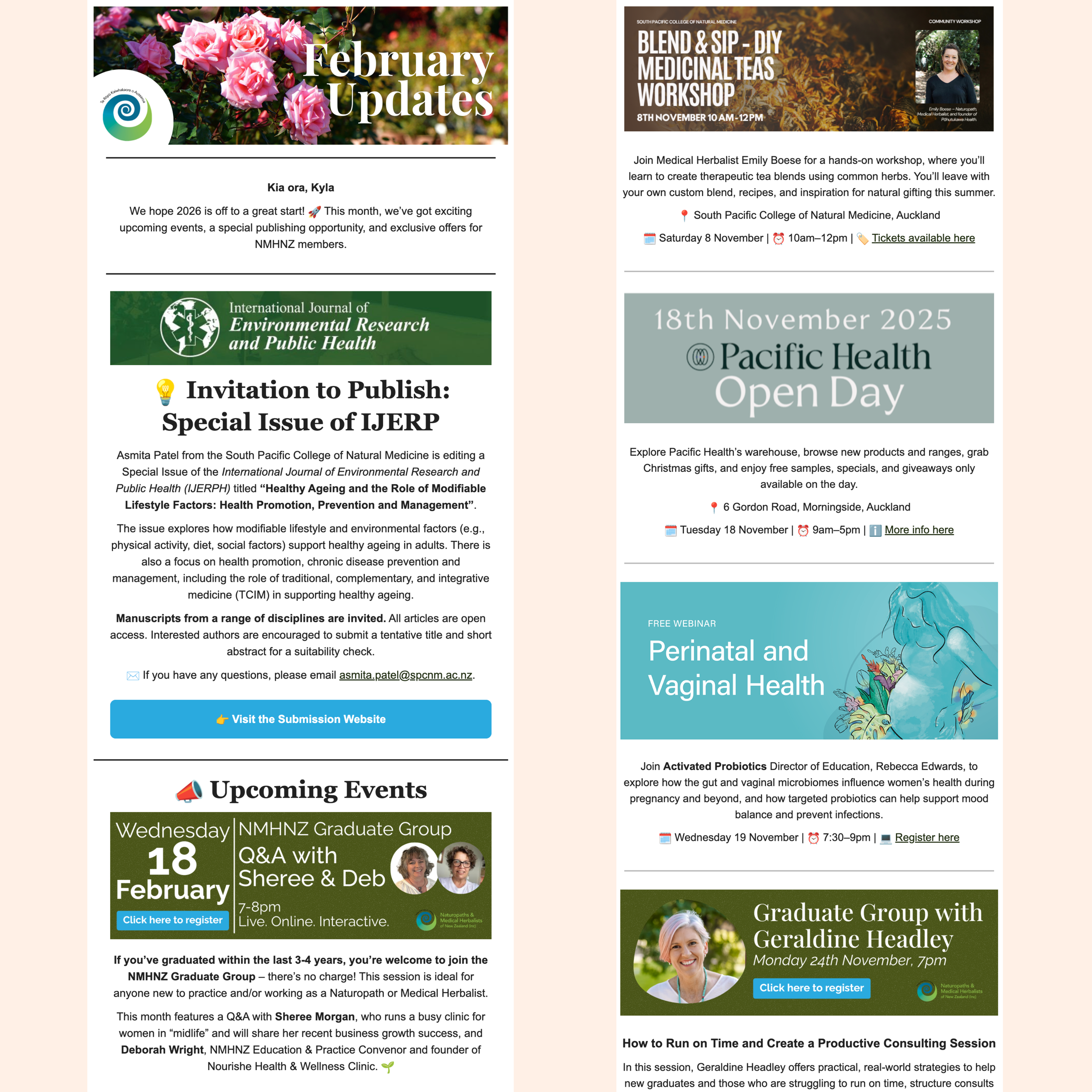 Email newsletters created for a professional naturopathy association, including content collation, layout design, and formatting for clarity and consistency.
